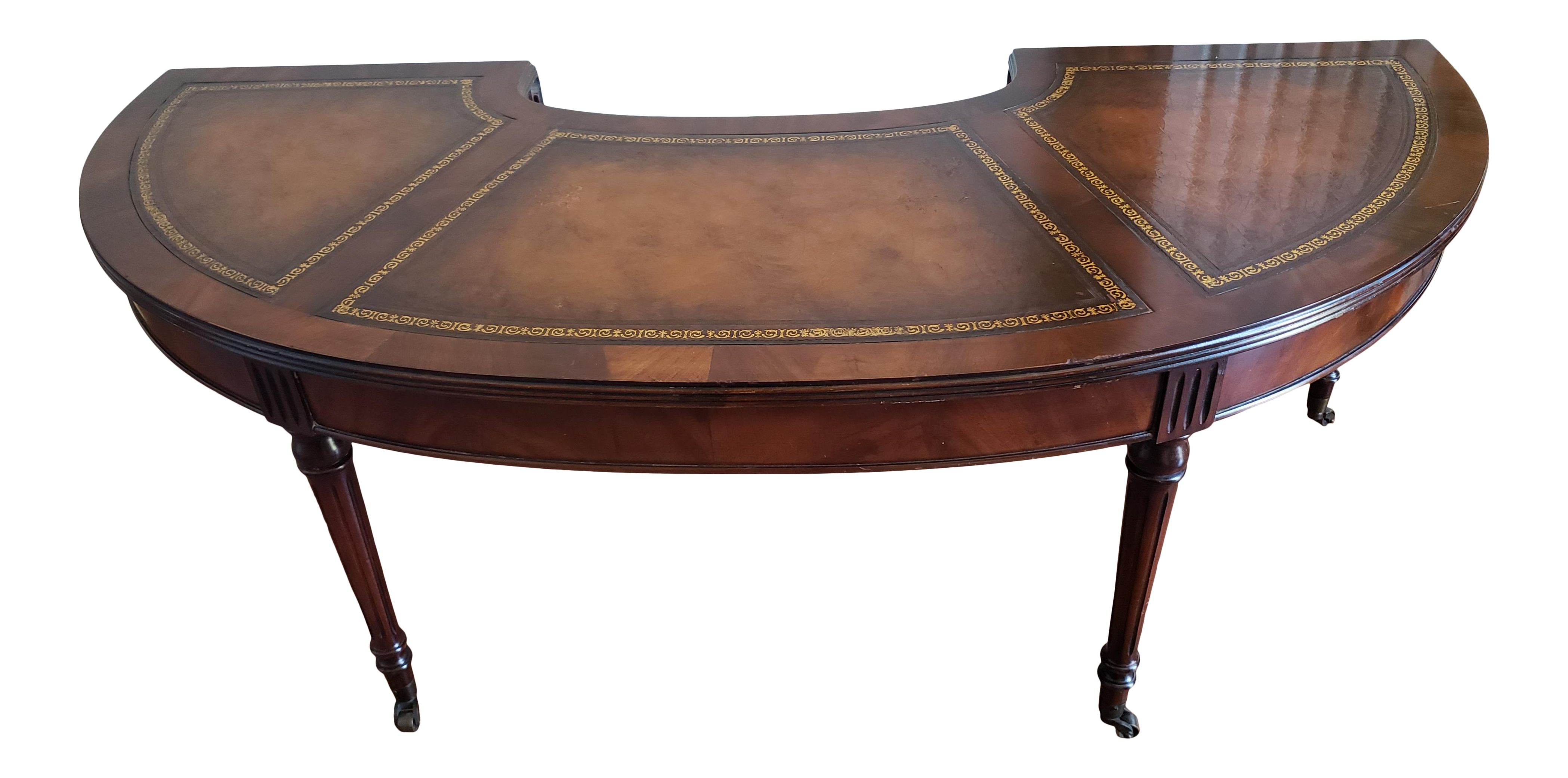 1950s Weiman Attributed Hepplewhite Mahogany Stenciled Leather Top Hunt Coffee Table Chairish